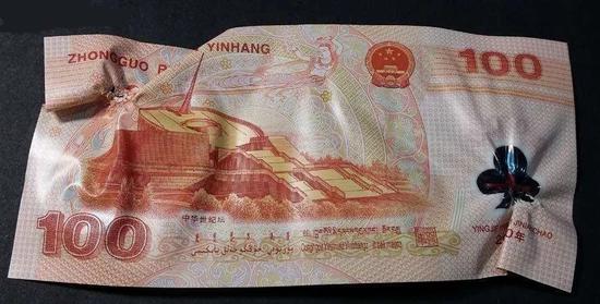 ▲塑料钞上的硬折几乎不可能恢复