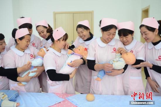 务工人员上新生婴儿护理培训课程。(资料图)中新社记者 刘文华 摄