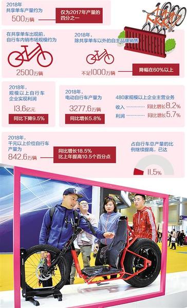 随着产量下降的还有利润率。数据显示,2018年规模以上自行车企业实现利润13.6亿元,同比下降9.5%。业内人士分析,从去年下半年开始行业利润降幅收窄,到去年第四季度利润甚至环比增长45.8%,行业盈利能力有所好转。
