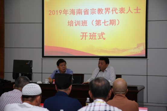 4月16日上午,由省委统战部、省社会主义学院联合举办的2019年第七期海南省宗代表人士主体培训班在省委党校开班。省委统战部副部长、省台办主任刘耿在开班式上作动员讲话,省委党校常务副校长王和平主持开班式。