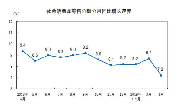 关于增速不高,国家统计局称,如考虑4月份节假日天数同比减少两天的因素,测算4月当月社会消费品零售总额同比增长8.7%,与上月持平。