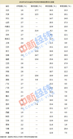 中新经纬客户端5月23日电 (张澍楠)全国31省份2019年4月CPI数据相继出炉,“蒜你狠”“车厘子自由”“香椿自由”等热议话题近期也重回大众视野,在菜价、水果价的强势围攻下,各省CPI又有何表现?