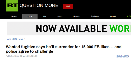 原标题:美通缉犯与警方谈条件:通缉海报获15000个赞就自首