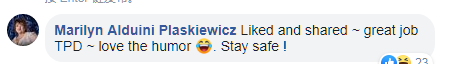 网友Marilyn:“点赞,分享,托灵顿警方做的很棒,保持安全。”