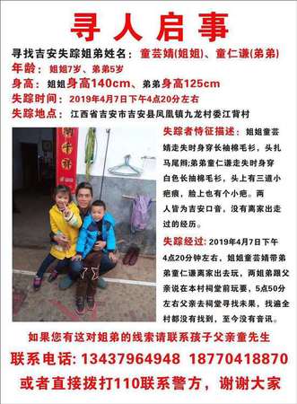 关键词:江西吉安两姐弟失踪月余 警方悬赏5万征集线索