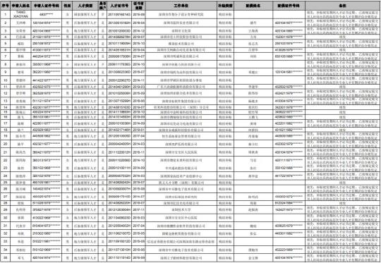 深圳公示今年首批领军人才住房补贴名单,最高补贴75万元