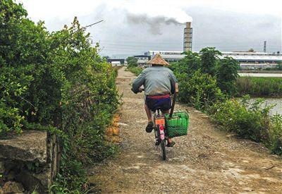翁垟一位赶海的渔民带着捕获的海鲜回家,他的家与一片工厂毗邻。