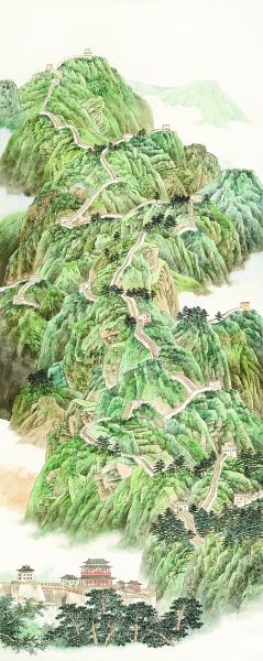 “时代新风”篇章中呈现出北京画院画家倾力打造的一系列最新创作,引来众人交口称赞?!毒┗戮场酚杀本┗荷剿榛掖醋鳎姆本┥剿雇记擅?,气势宏大。谢永增、刘旭的《雁栖春晓》描绘了北京怀柔雁栖湖春日风光;郭宝君、买鸿钧在《西山拥翠》中以北京西郊郁郁葱葱的山景为对象,青绿叠翠,展现北京自然之美;在《通州新貌》中,牛朝、徐卫国以精湛画技绘制了北京城市副中心通州日新月异的发展面貌;庄小雷的《长城畅游》气势恢弘又精巧雅致,给古老长城带来了崭新气象。