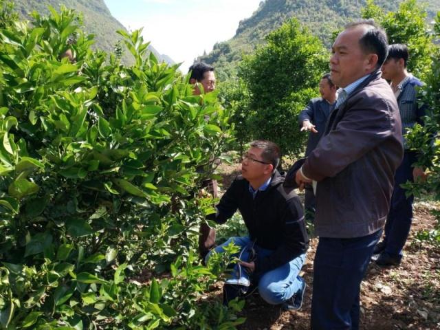 走访当地群众种植的柑橘园,与熟悉农业生产的工作队分队长一同指导群众如何管理好果园。