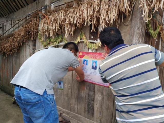 村里有贫困户182户,每户都挂了有驻村扶贫干部的牌子,方便村民有事联系。