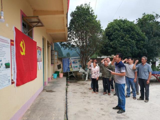 “七一”重温入党誓词,增强村里党员的荣誉感及责任感,为脱贫攻坚贡献力量。