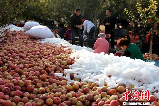 陕西是中国苹果第一大省,洛川县苹果种植户陈长建家种了七亩红富士苹果,2018年4月初,陕西、宁夏、山西等地爆发50年不遇的霜冻,他们家的果树没能幸免,只收了四万两千斤苹果,比2017年减少40%,但庆幸的是,去年苹果数量少,他家的苹果卖得晚,收购价格比哪年都高,红富士苹果一斤卖到五元,但由于霜冻,他还是比往年少收了两万元。