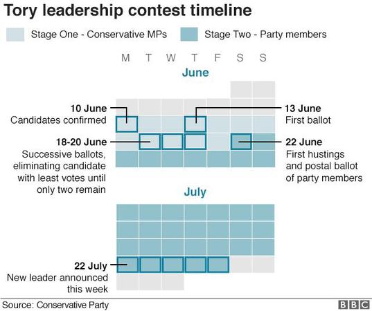 英国当地时间6月10日傍晚6点(北京时间6月11日凌晨1点),英国下届首相人选名单得到了确认。1922委员会(1922 Committee)正式宣布:目前总共有10位保守党候选人参与这届首相职位的角逐。按照竞选程序,候选者需要获得八位保守党议员的支持才可以参加竞选,第一轮投票将于当地时间13日开始。首相人选名单删选工作会一直持续到6月22日,届时只会剩下两名候选人,这两名候选人将展开竞选集会。英国保守党需要一个月的时间来确定最后的首相人选,并在7月22日正式对外公布。新首相人选需经英国女王伊丽莎白二世批准,任期至下次大选。