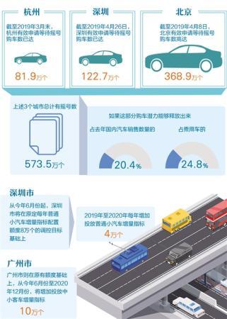 截至目前,广州、深圳两地已经有所行动。6月2日,深圳市交通运输局与广州市交通运输局分别发布了《关于增加中小客车增量指标配置额度的通告》,从今年6月份起,深圳市将在原定每年普通小汽车增量指标配置额度8万个的调控目标基础上,2019年至2020年每年增加投放普通小汽车增量指标4万个。广州市则在原有额度基础上,从今年6月份至2020年12月份,将增加投放中小客车增量指标10万个。