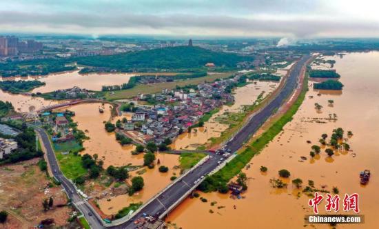 资料图:无人机航拍江西省吉安市城区以及吉水县、泰和县等地的洪涝灾害画面。吴建华 摄