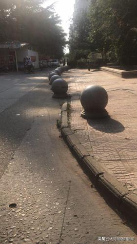 为了防止停放车辆,绿化带旁有许多石墩
