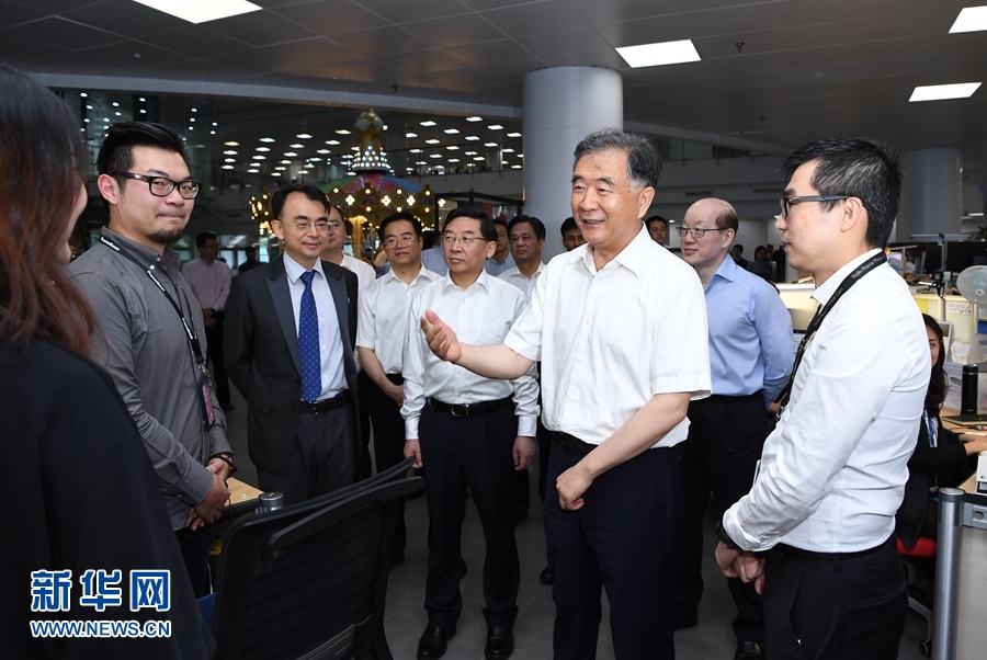 6月14日至16日,中共中央政治局常委、全国政协主席汪洋在出席第十一届海峡论坛期间,深入闽江学院、网龙台湾青年就业创业基地、厦门(集美)闽台研学旅行基地、玉晶光电(厦门)有限公司调研,并与在大陆工作学习的台湾青年代表座谈。这是6月14日汪洋在福州网龙台湾青年就业创业基地调研。 新华社记者 饶爱民 摄