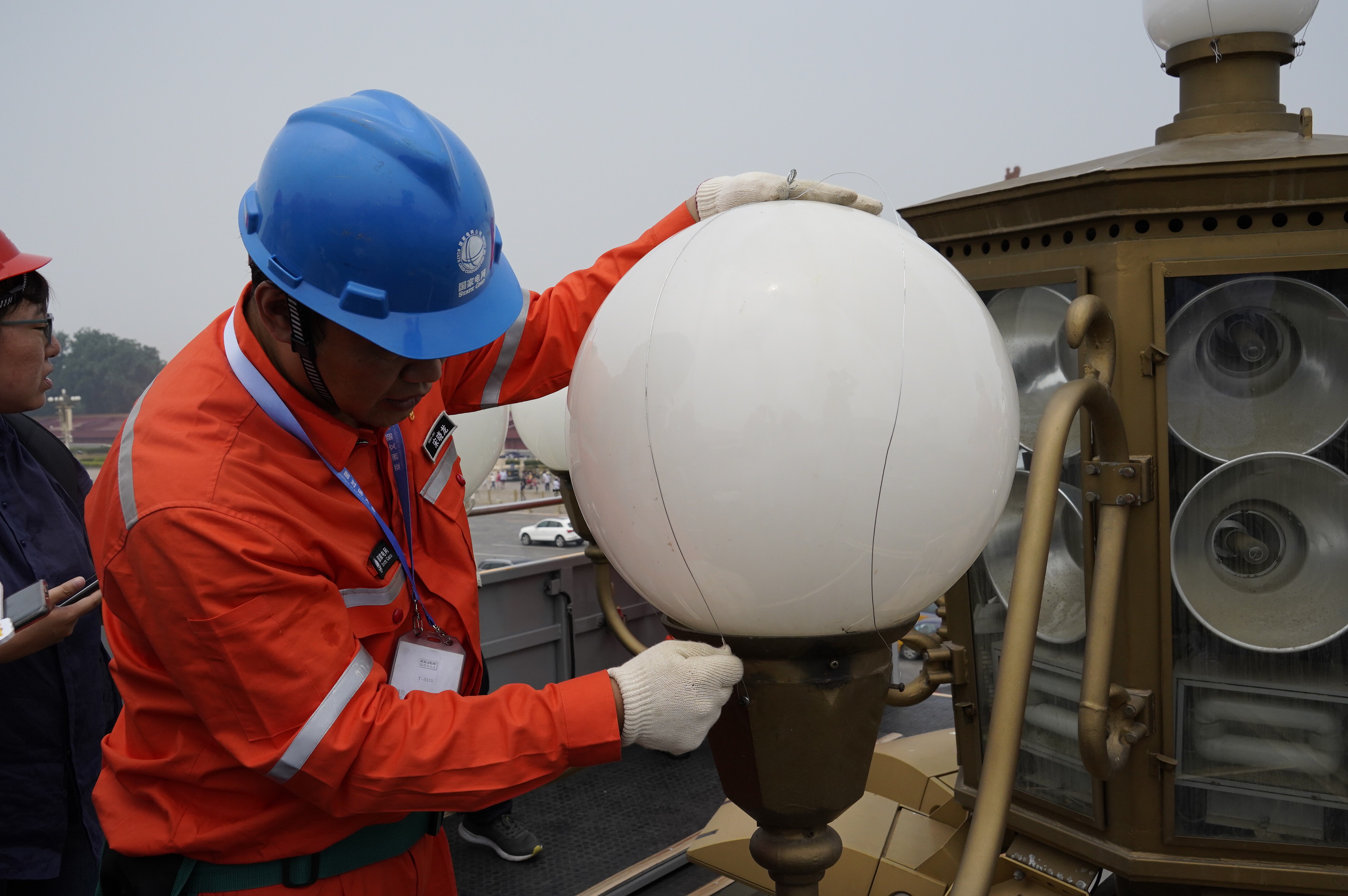 人民政协网北京6月19日电(记者 周佳佳 付振强)6月19日,国网北京市电力城市照明管理中心华灯班全体成员着新版工作服亮相天安门广场,正式开启对长安街253基华灯、6000多个光源进行全方位清洗检修。