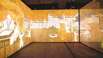 “祥和逸居”内容上整体分为两大章节。第一部分“茂林竹居”,我们以宋代名画《十八学士图》《西园雅集图》为载体,通过动态数字展示将古代文人墨客茂林竹居的自然园艺观全新解读。运用国画中水墨晕染的方式,从局部到整体,逐一展示两幅画作中蕴含的人文精神。古代画卷与现代科技的创意结合,也为沉浸式空间的画面奠定基调。