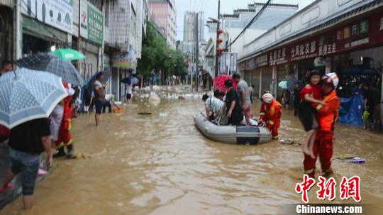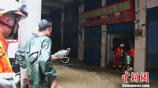 持续强降雨导致沿河县城区多地出现内涝。灾情发生后,当地消防救援部门接到多起民众因内涝遇险求助电话。接到险情后,消防救援部门立即组成3个救援小组分赴城区各地实施救援。