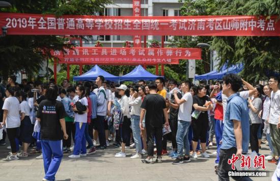 资料图:2019高考山东济南山东师范大学附属中学考点。中新社记者 张勇 摄