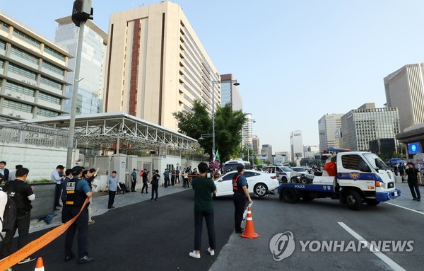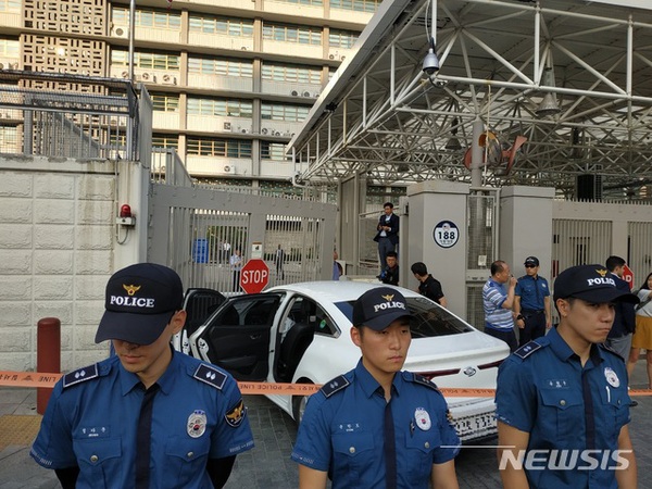 韩男子驾车冲撞美驻韩大使馆 车内发现20个瓦斯罐