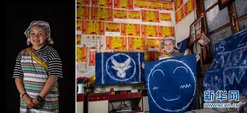 左图:泸水市大兴地镇维拉坝“珠海社区”易地扶贫安置工作队队长桑娜妞(傈僳族)。在她身后,村民在唱傈僳族民歌(6月24日新华社记者胡超摄);右图:桑娜妞(中)在大兴地镇维拉罗三组走访因病致贫的贫困户波益付(左)一家(6月24日新华社记者秦晴摄)。
