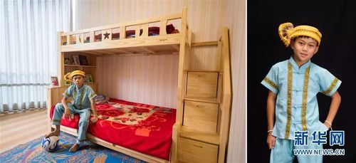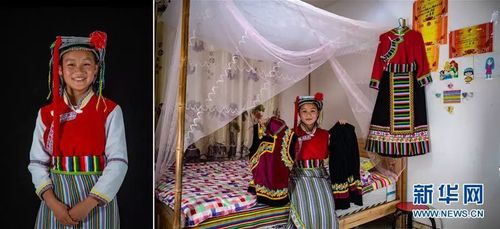 左图:丰元吉,怒族,今年12岁,家住贡山县丙中洛镇甲申村(6月22日摄);右图:丰元吉在卧室里展示自己收集的民族服饰(6月22日摄)。她很喜欢少数民族服装,常?;岽┢渌褡宓姆叭ケ硌?。 新华社记者江文耀摄