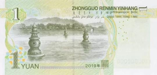 背面调整主景、面额数字的样式,取消右下角局部图案,年号改为“2019年”。