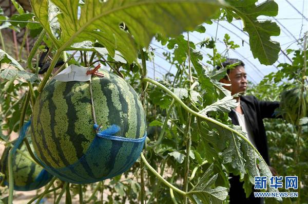 陕西省延安市安塞区化子坪镇油坊坪村的村民王涛在西瓜大棚里修枝(4月23日摄)。新华社记者 刘潇 摄