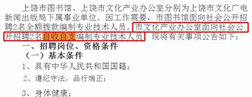 北青报记者电话联系上饶市文化广电新闻出版旅游局非文化遗产?;ぶ行墓ぷ魅嗽绷私獾?,自2016年2月入职后,余先生和另一名同时考取自收自支编制的人员暂时借调至局机关单位3个月。2016年5月,原单位领导确认让这两名工作人员回到文化产业办工作。2016年10月,上饶市机构编制委员会下发通知,将“文化产业办”单位名称更为“非物质文化遗产?;ぶ行摹?,单位级别不变,但是性质发生变更,由原先的自收自支事业单位改为全额拨款事业单位。原有在编人员的性质未发生变更,2016年10月以后新进人员遵从全额拨款规定。