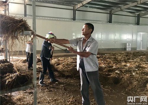 记者见到68岁的村民沈二阳时,他正在车间收拾发酵的秸秆。“在这里做杂工,每个月能收入2000多元?!弊酆咸蹇沟木鸵捣銎段?2户贫困户提供了岗位。固定用工3名,每户年收入在2万元以上,临时用工29名,每人每天80-100元,年收入也均在3000元以上。