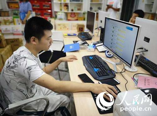 图为赵鑫宇在操作电商平台。人民网记者 王宇鹏 摄