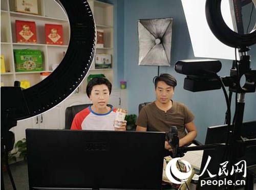 在产业园里记者看到,在一间办公室里摆放着桌子、电脑、摄像头和摄影用补光灯,两位电商主播正面对镜头,通过电商直播平台推销贫困农户特产,一边介绍产品,一边与网友互动。而在隔壁实景布置的一间演播室,两位正在“下厨房”的主播则在推荐副食产品。