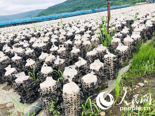 天桥岭村路旁种植的木耳。 人民网 张玫 摄