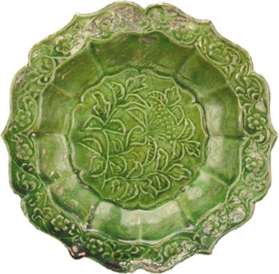 图为“南海Ⅰ号”沉船的磁灶窑绿釉菊瓣花口碟。