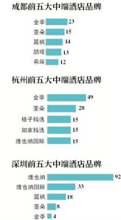 新京报记者就此选取了北京、上海、杭州、深圳、成都五座城市,作为华北、华东、华南和西南地区代表,梳理华住、锦江、首旅、亚朵等酒店集团的中端酒店品牌在当地的布局情况,还原中端酒店城市布局逻辑。