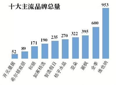 十大主流中端酒店总量中,维也纳(含维也纳国际、维也纳皇家、维纳斯国际)总量最多,在营数量为953家(去年905家),其次为全季,在营总数为600家(去年551家),第三名为麗枫,在营总数为395家(去年412家),第四名是亚朵(含亚朵轻居),在营总数为322家,智选假日(含假日),在营总数为235家(去年211家),如家精选在营总数为190家(去年177家),和颐在营总数为171家(去年152家),希尔顿欢朋在营总数为89家(去年63家),开元曼居在营总数为52家(去年42家)。