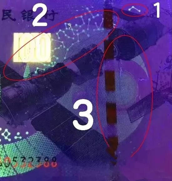 航天钞中的流浪地球是今年上半年发现的新品种,跟普通航天钞相比,“流浪地球”在防伪线右侧,有显眼的星球荧光,因此才取了这个名。