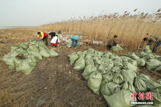 资料图:上海崇明区东风西沙水库附近江面出现大量来自外省市的生活垃圾。张亨伟 摄