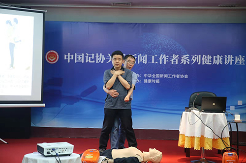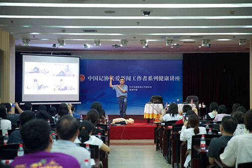 7月12日,中国记协与人民日报社健康时报共同举办第二期关爱新闻工作者系列健康讲座。北京急救中心知名资深急救专家贾大成现场讲解急救科普知识,来自中央主要新闻单位、全国性行业类媒体、全国性新闻社团等新闻工作者代表百余人参加。