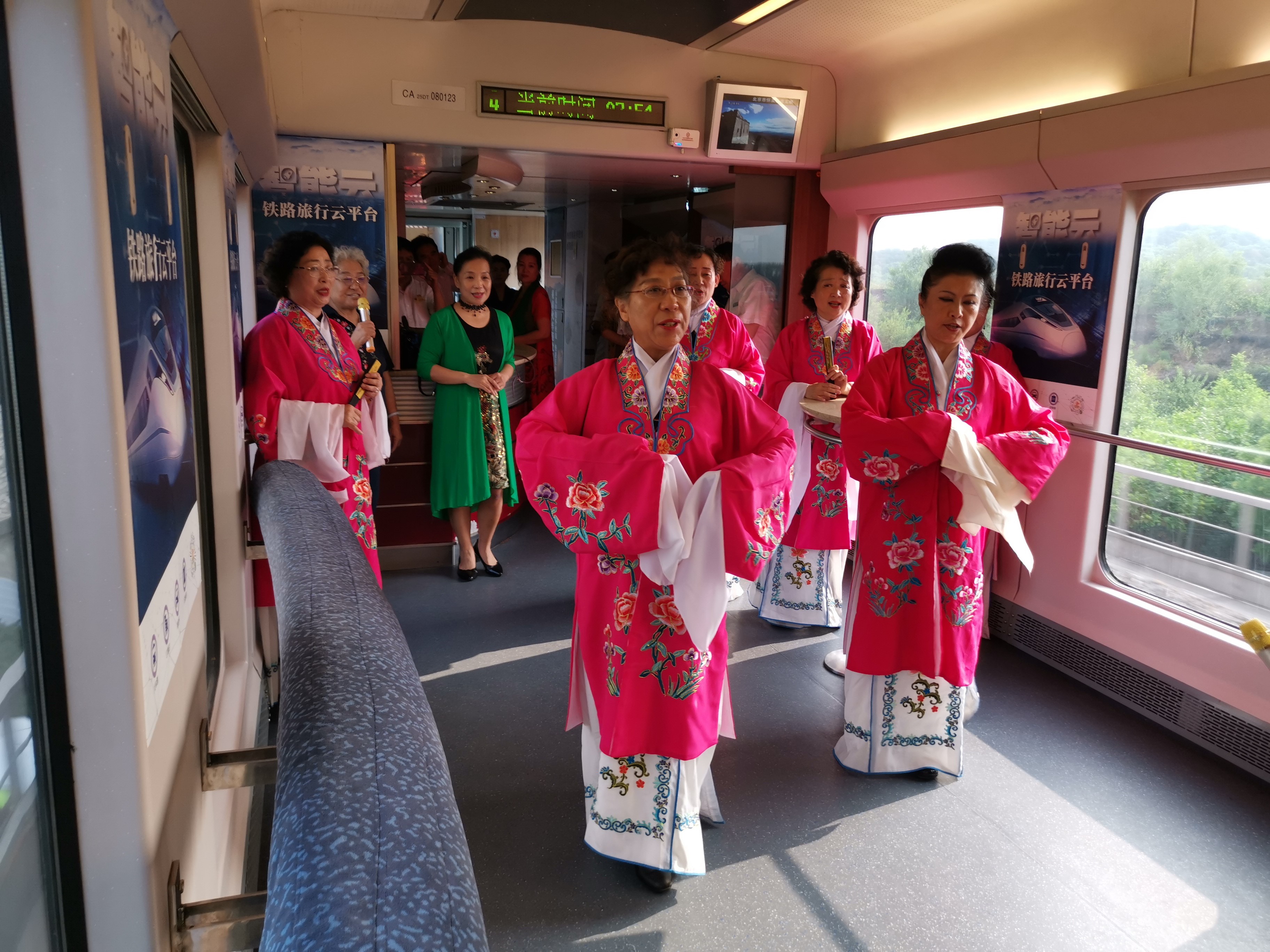 同时,活动还邀请了北京市各区县群众文化艺术馆优秀演员和列车工作人员在车厢内开展以“北京文化”“红色文化”“亲子活动”等民众喜爱和方便参与的互动活动,戏曲、朗诵、歌舞表演应有尽有,旅客可以切身感受到“出行即出游”和“乘着火车游北京”的完美旅游体验。