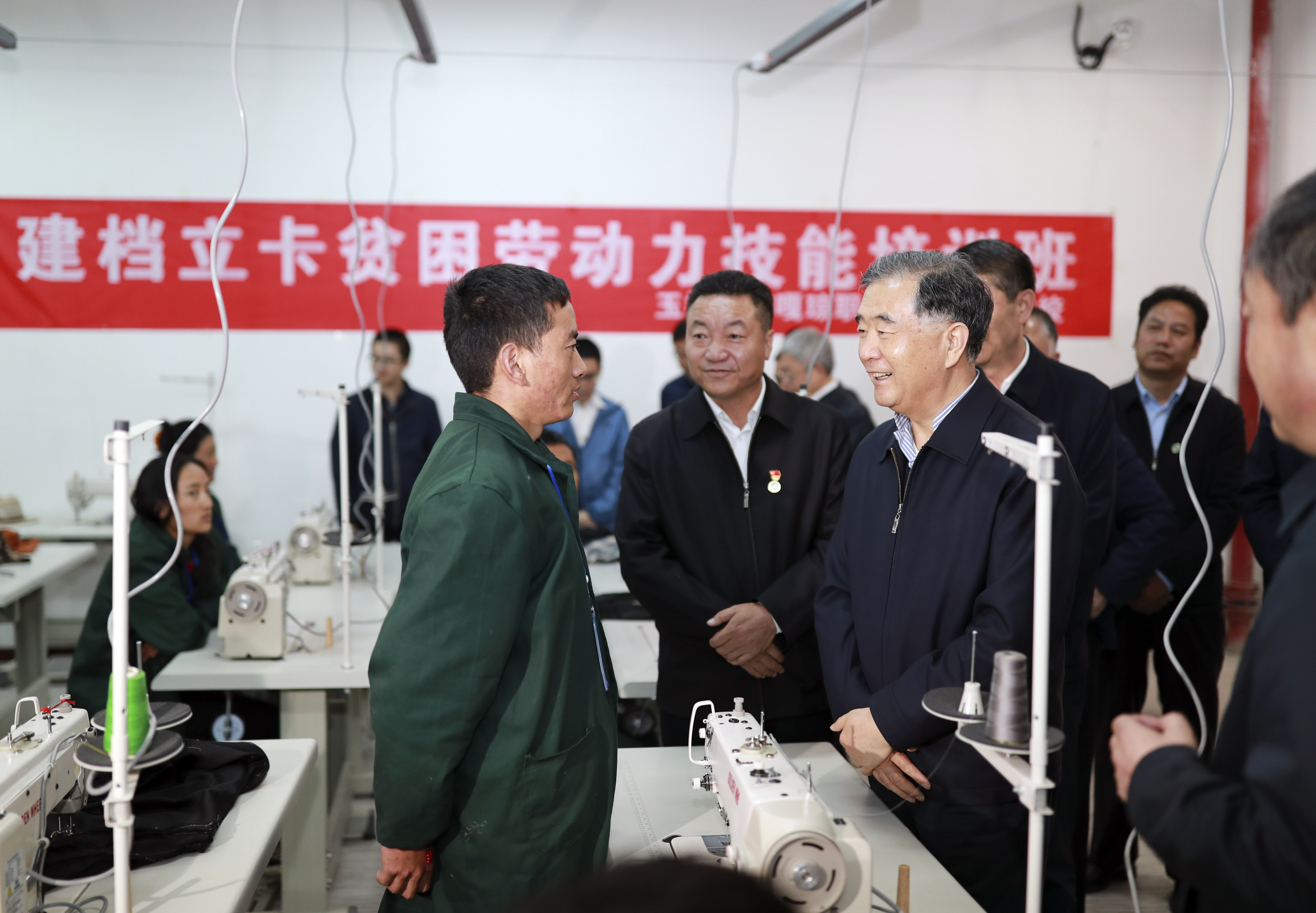 7月16日至17日,中共中央政治局常委、全国政协主席汪洋在青海调研。这是7月16日,汪洋在玉树市(省级)扶贫产业园区了解情况。新华社记者 丁林 摄