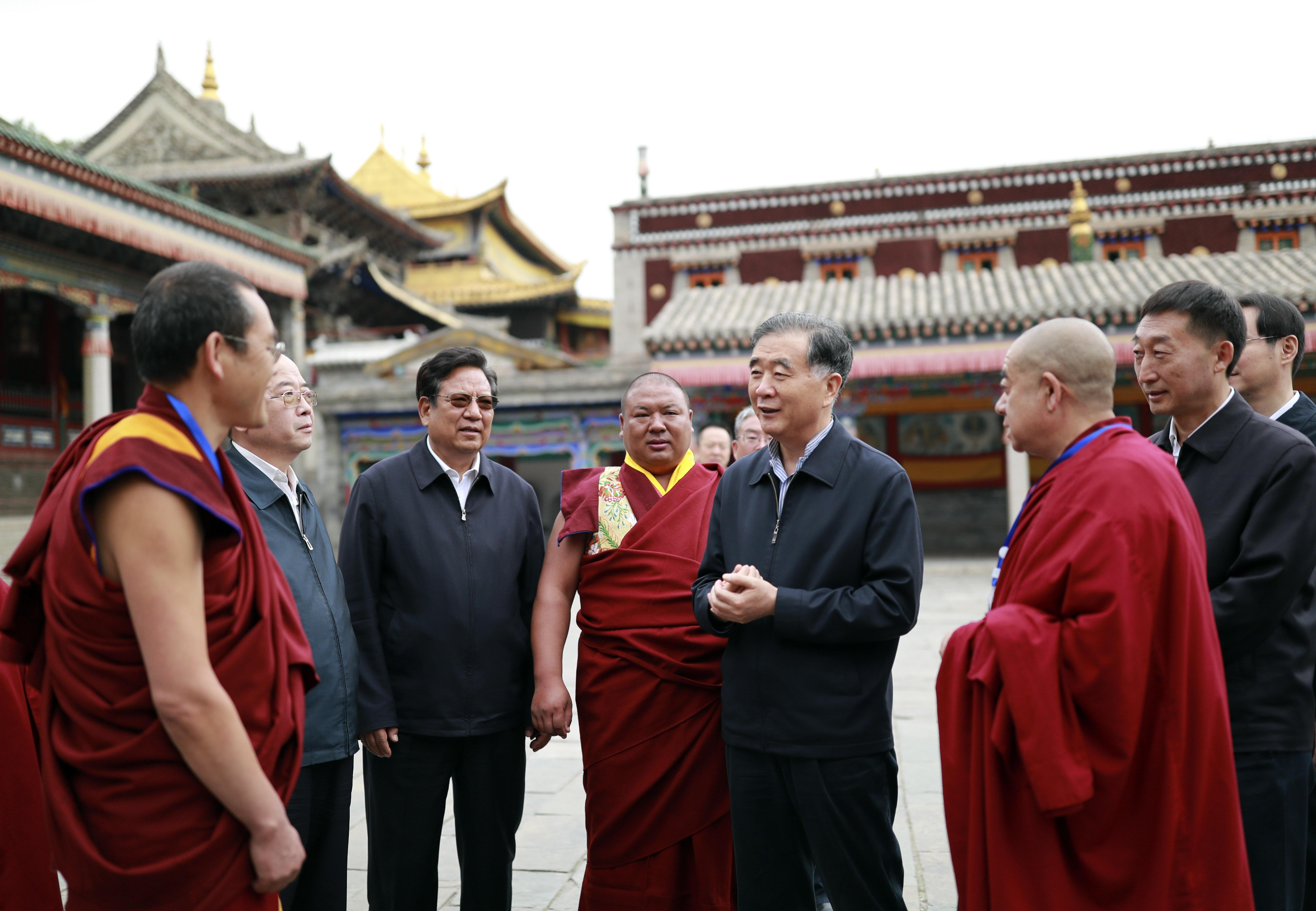 7月16日至17日,中共中央政治局常委、全国政协主席汪洋在青海调研。这是7月17日,汪洋在塔尔寺了解情况。新华社记者 丁林 摄