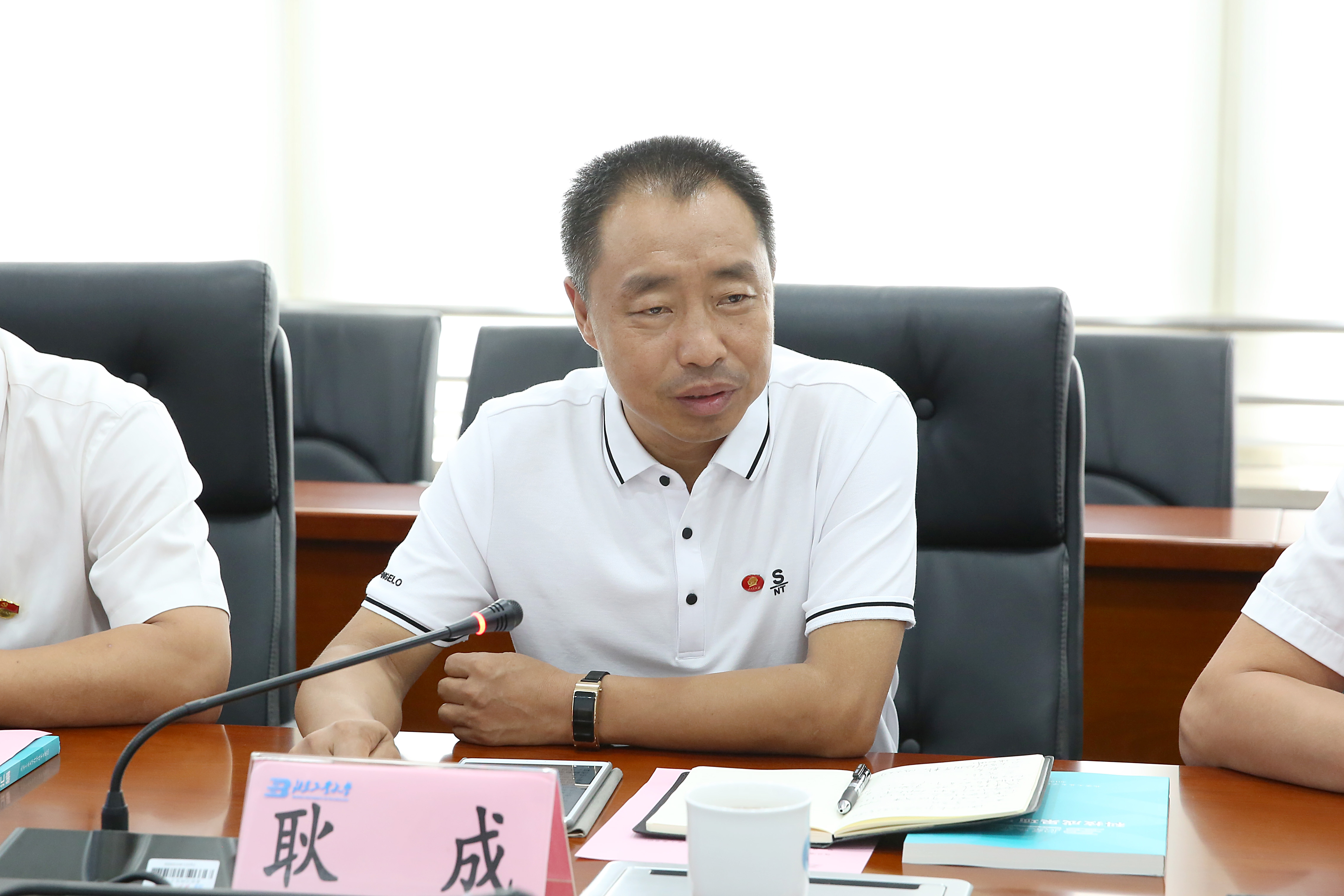 乌兰浩特市开发区党工委书记、管委会主任耿成在座谈会上和校方交流