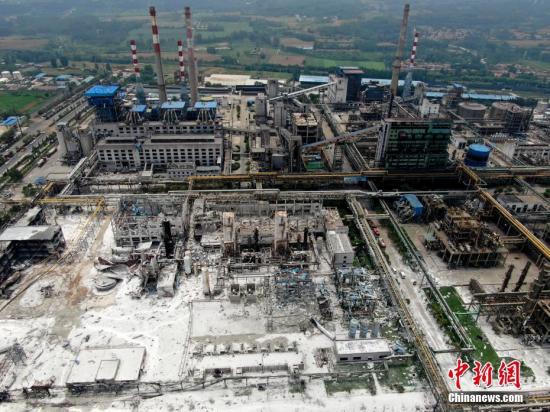 7月20日,俯瞰发生爆炸后的义马气化厂。中新社记者 王中举 摄