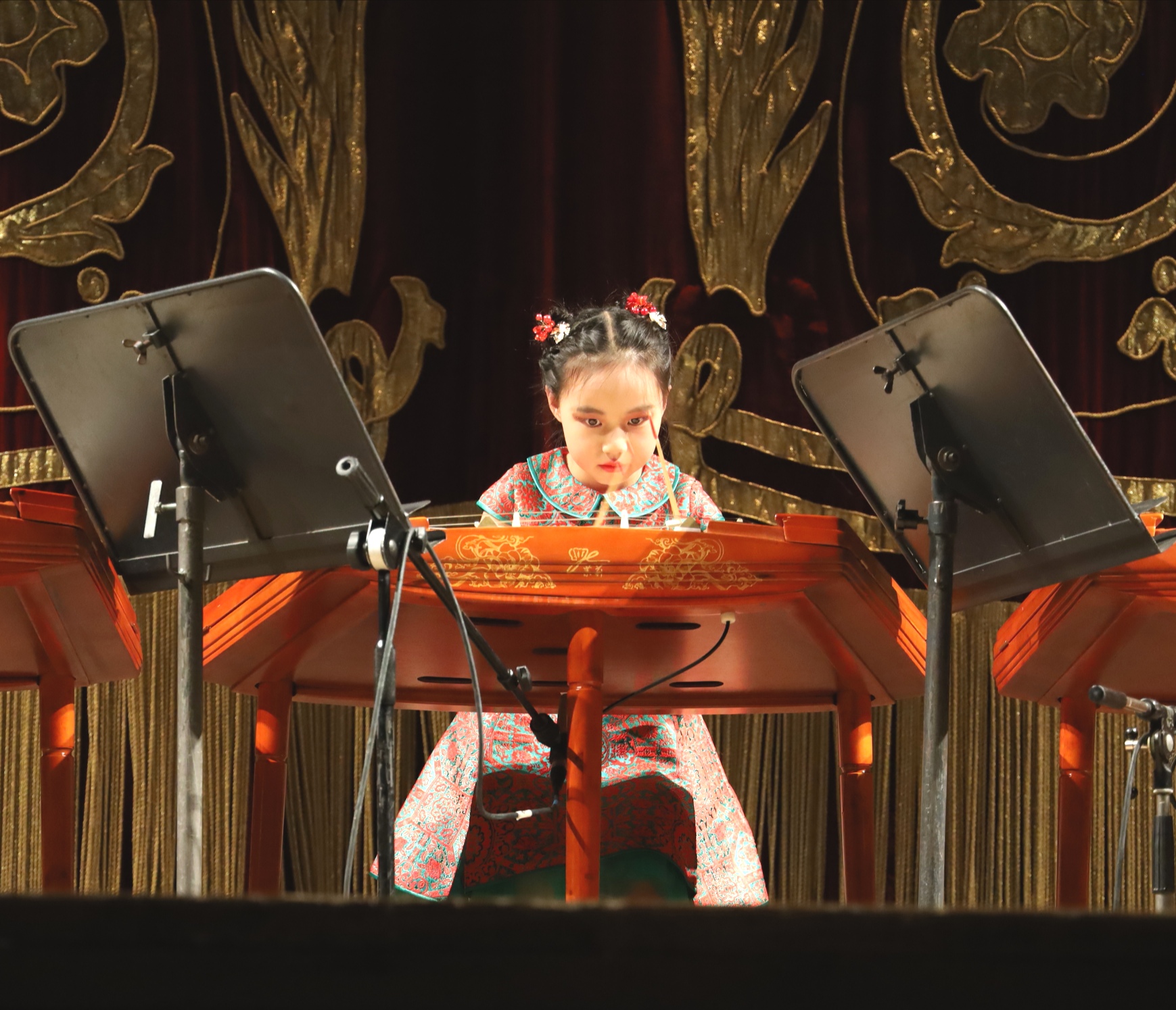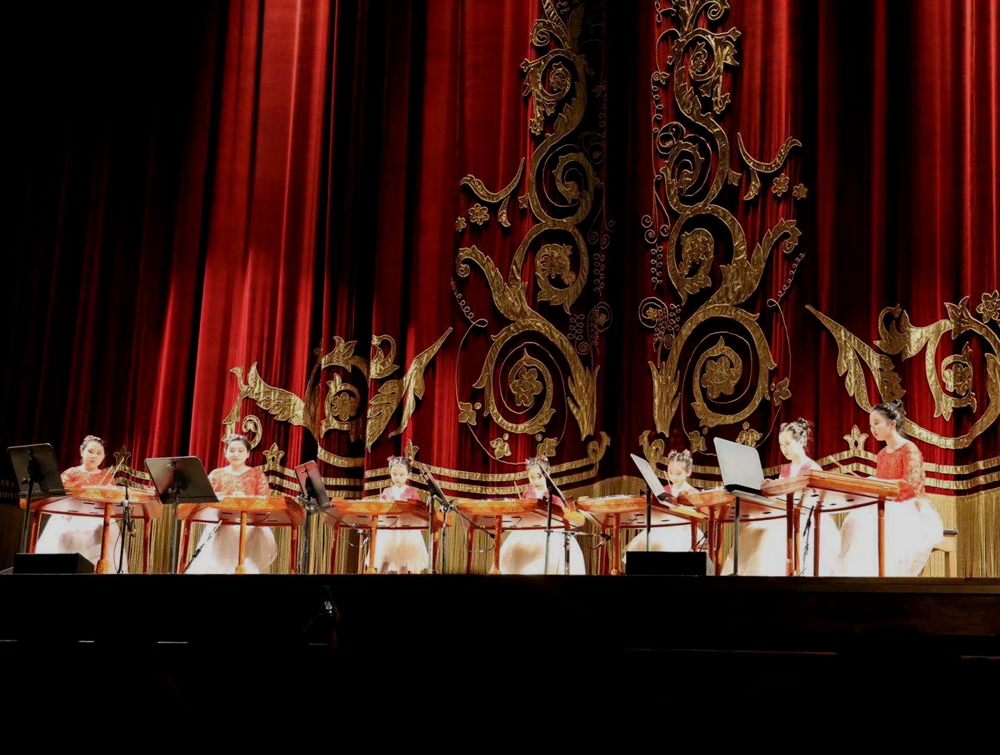 当晚的中国扬琴专场音乐会,曲目选择可谓中西合璧、令人耳目一新。由世界扬琴乐团“红袖子”组合、著名扬琴演奏家李萍和卞秀峰带来的《平湖秋月》(吕文成作曲,赖应斌、谭昕改编);中央音乐学院“茉莉花”扬琴重奏团顾雨蕾、周婷婷、冯汝媛、孙一良、郭嘉盈、张子童、徐靖媛联合演绎的世界首演新作《意大利风情》(孙小松编曲)、欧洲首演新作《衮雪》(陈锦标作曲)、《西行》(于洋作曲)、《丝路?茉莉》(张诗乐作曲);北京“小茉莉”艺术团夏昕颍、孟家伊、苗聿文、孙悅馨、王心润、肖静远精彩演奏的《闲聊波尔卡》(小约翰斯特劳斯作曲、陈芸芸改编)以及苗聿文和肖静远分别担任独奏的扬琴名曲《春到清江》(刘维康作曲)、《喜讯》(桂习礼作曲)。