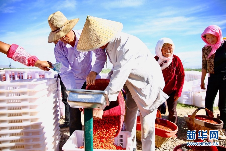 同德村驻村第一书记吴立权介绍说,为了提高村民收入,同心县政府坚持把生态环境治理、枸杞产业发展与精准脱贫同步推进,通过引进外来企业,组织本村村民签订务工合同等方式,利用产业扶贫帮助村民实现脱贫。在采摘高峰期,每天有近2000名村民参与采摘工作。润德公司负责人介绍说,公司每年支出近3000万元的采摘费,既增加了当地村民的收入,也解决了移民村农民就业难的问题?!俺烧猓颐腔股栌胁返募庸ど?,农民们在转变成为产业工人的同时,也带动了自身生活方式和观念的转变。”