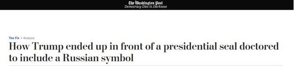 被恶搞的美国总统徽章(左)与俄罗斯国徽(右)