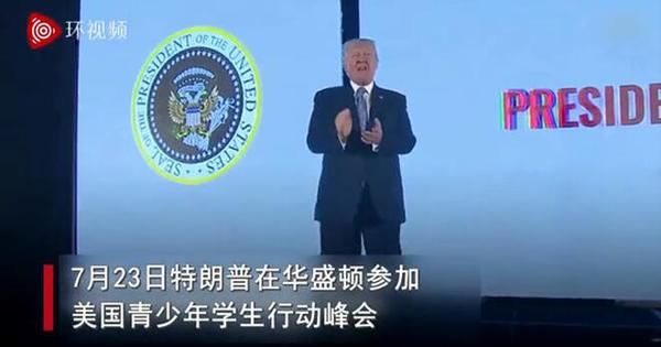 特朗普参加演讲时,背后出现了错误的总统徽章